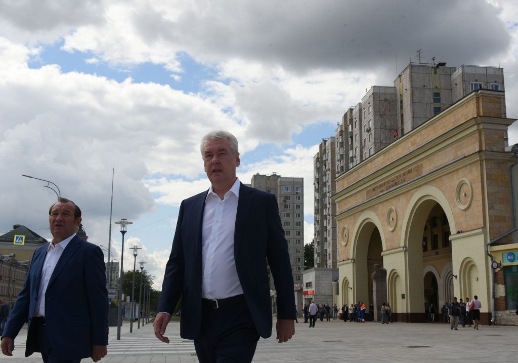 Мэр Москвы Сергей Собянин 20 июля осмотрел процесс работ по обновлению улиц Житная и Коровий Вал.