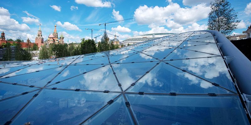 Работы по покрытию купола одной из построек в «Зарядье», который из-за своей формы получил название «стеклянная кора», завершатся в течение недели. Об этом сообщили 4 августа.