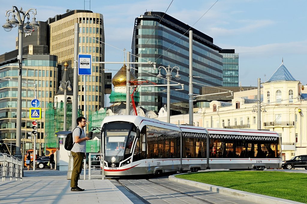 Напомним, что после завершения всех работ по благоустройству на этом участке было запущено трамвайное движение. У Белорусского вокзала создано разворотное кольцо, здесь запустили два маршрута — № 7 и 9. Они связывают Белорусский, Казанский, Ленинградский и Ярославский вокзалы. Для перевозки пассажиров введены новые бесшумные низкопольные трамваи «Витязь-М», которые ходят с интервалом три-четыре минуты.