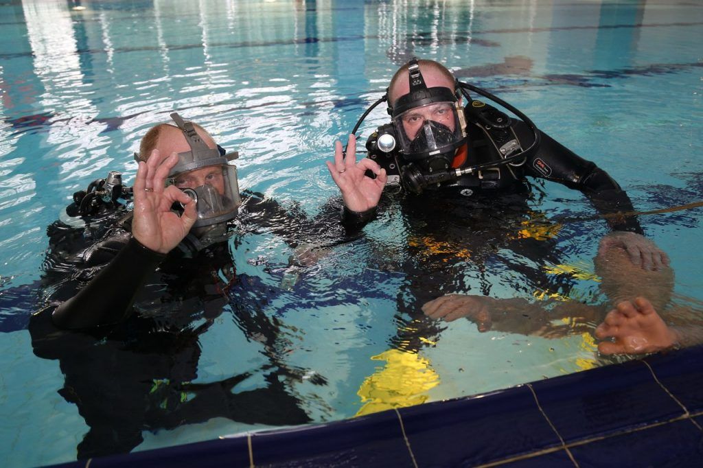 В УМЦ создана большая спортивная база с бассейном. В ходе пресс-тура была продемонстрирована подготовка водолазов Московской городской поисково-спасательной службы на водных объектах. Преподаватель кафедры пожарной безопасности и аварийно-спасательных работ Виталий Байталоха провел показательное занятие по отработке первичных навыков совместной работы обеспечивающего водолаза (т.е. водолаза, который находится на суше) и работающего водолаза (который находится в воде), рассказал о том, какими специальными сигналами обмениваются водолазы во время работы и какое оборудование они используют.