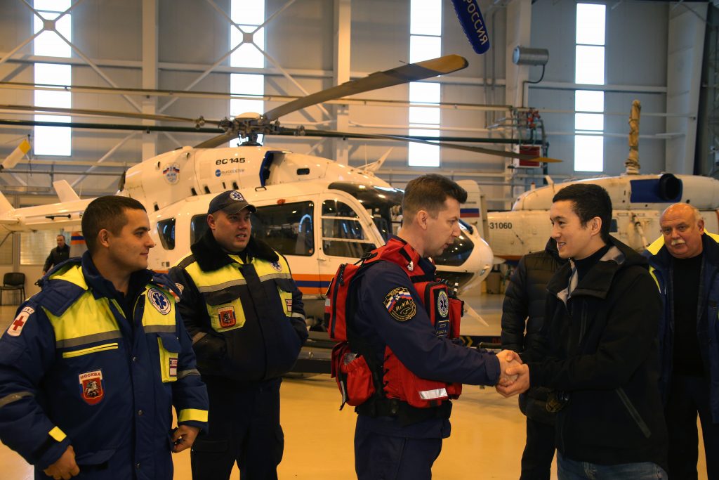 На встрече присутствовали оба руководителя учреждений, от которых представители СМИ узнали, что между ними существует Соглашение, по которому и авиация, и медицина столицы работают совместно.